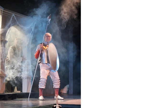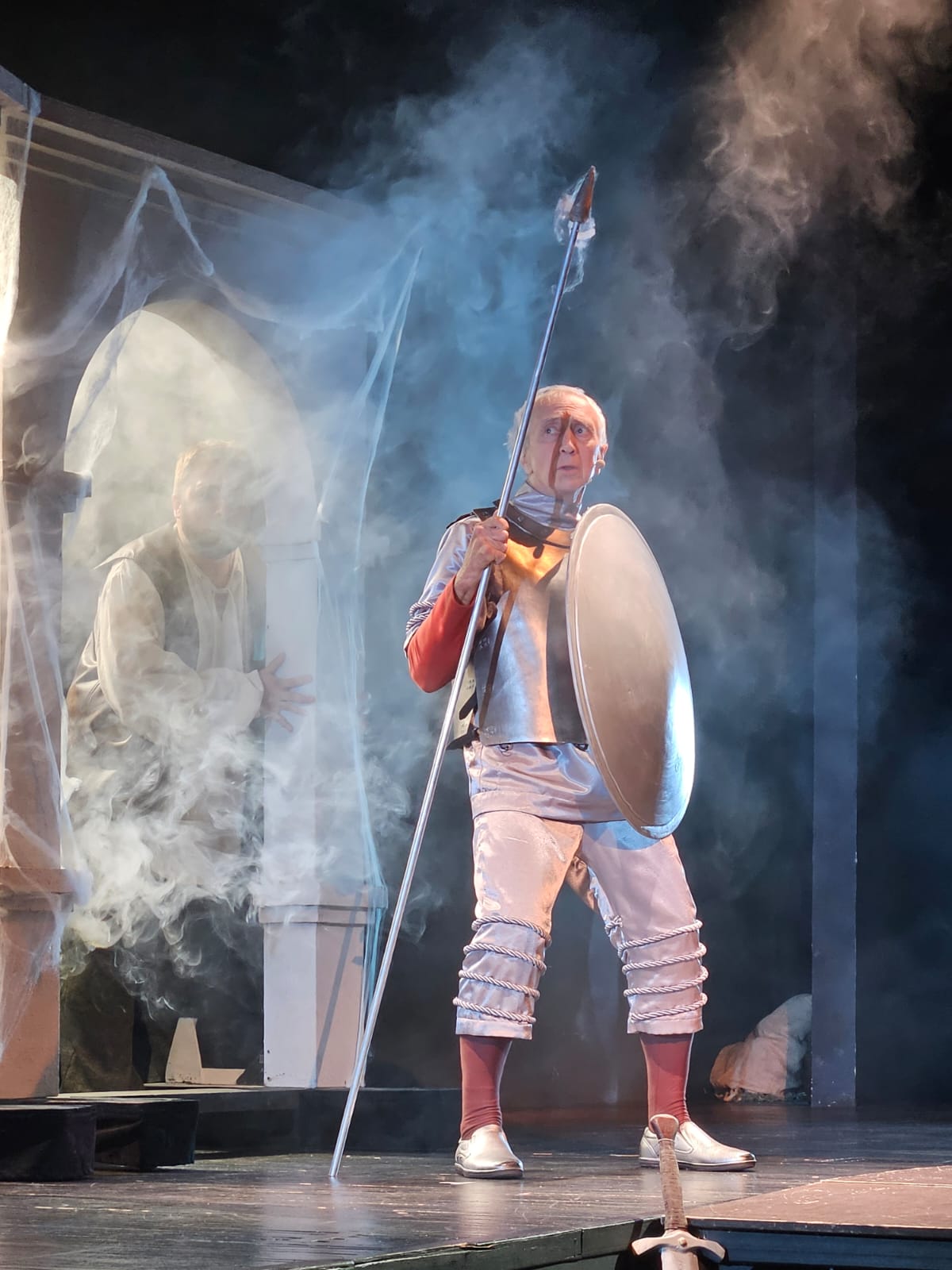 В прошлом году он вышел на сцену в "Вие" в роли пана сотника, и сразил публику опытом и уверенной эмоциональной игрой. Как обедневший испанский дворянин он тоже вполне состоятелен. Беспомощный, победоносный, безумный, трогательный, разъяренный, влюбленный — это всё Александр Иванович. Ему невероятно идут рыцарские латы, и даже тазик для бритья, что он отнял у цирюльника и водрузил себе на голову, смотрится на нем не комично, а благородно.