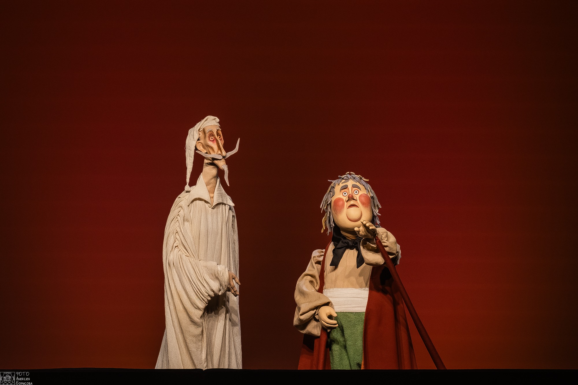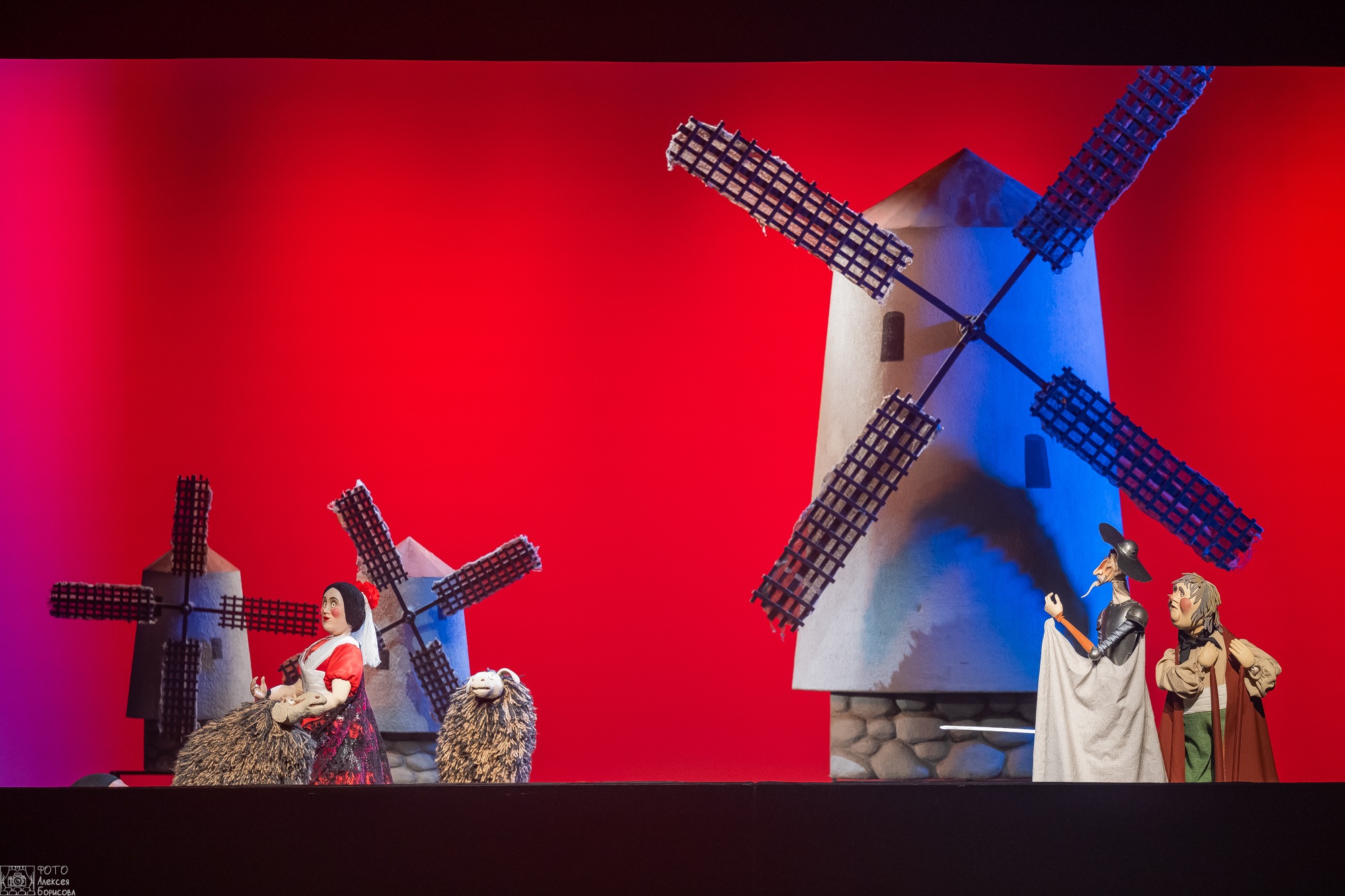 Живой план сменяется кукольным, где солируют те самые куклы Сергея Амирова. Стиль, в котором творил Амиров называли фантастическим реализмом, и действительно эти тростевые создания насколько реальны, настолько и невероятны. От актеров, что в живую задействованы в "Дон Кихоте", у них только голоса, а управляют ими другие артисты. Кроме главных персонажей, здесь появляются трактирщик, музыканты, каторжники, всякий друг люд и даже стадо баранов. И порой на каждый куклу приходится сразу по несколько человек. Так, когда кукольная Дульсинея пускается в пляс, то ей руководят сразу три мастера.