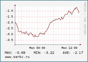 Дует западный ветер, 5 м/с с порывами до 13 м/с. Атмосферное давление понизится с 761 до 754 мм рт. ст. к вечеру.