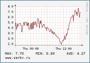 Дует восточный ветер скоростью 2-4 м/с. Атмосферное давление снижается с 761 до 759 мм рт.ст.
