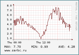 Дует юго-восточный ветер скоростью 5-8 м/с. Атмосферное давление снижается с 761 до 757 мм рт.ст.