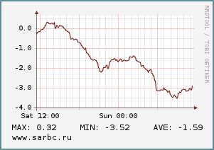 Дует западный ветер, его скорость снижается с 7 до 4 м/с. Атмосферное давление растёт с 752 до 760 мм рт.ст.