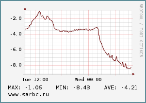 Ветер меняет направление с южного на северо-западное и скорость с 8 до 4 м/с. Атмосферное давление повышается с 756 до 763 мм рт.ст.