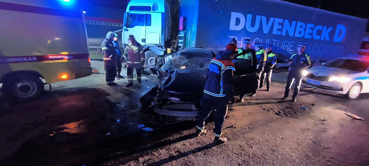 По предварительным данным, после часа ночи возле дома N78 по пр-ту Строителей (вблизи пос. Пробуждение) "Шевроле Круз" под управлением 32-летнего мужчины врезался в стоящую фуру "МАН" с 52-летним водителем. В результате аварии водитель "легковушки" погиб, спасатели достали его тело, а также пострадавшую 22-летнюю пассажирку с помощью гидравлического инструмента.