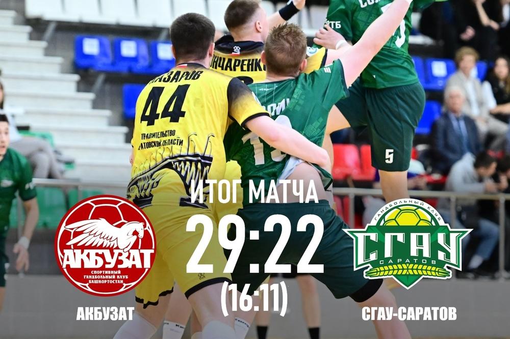 Матч в Уфе завершился со счётом 29:22 (16:11) в пользу хозяев площадки. Саратовцы выступали молодёжным составом, так как уже гарантировали себе девятую строчку и продление прописки в Суперлиге.