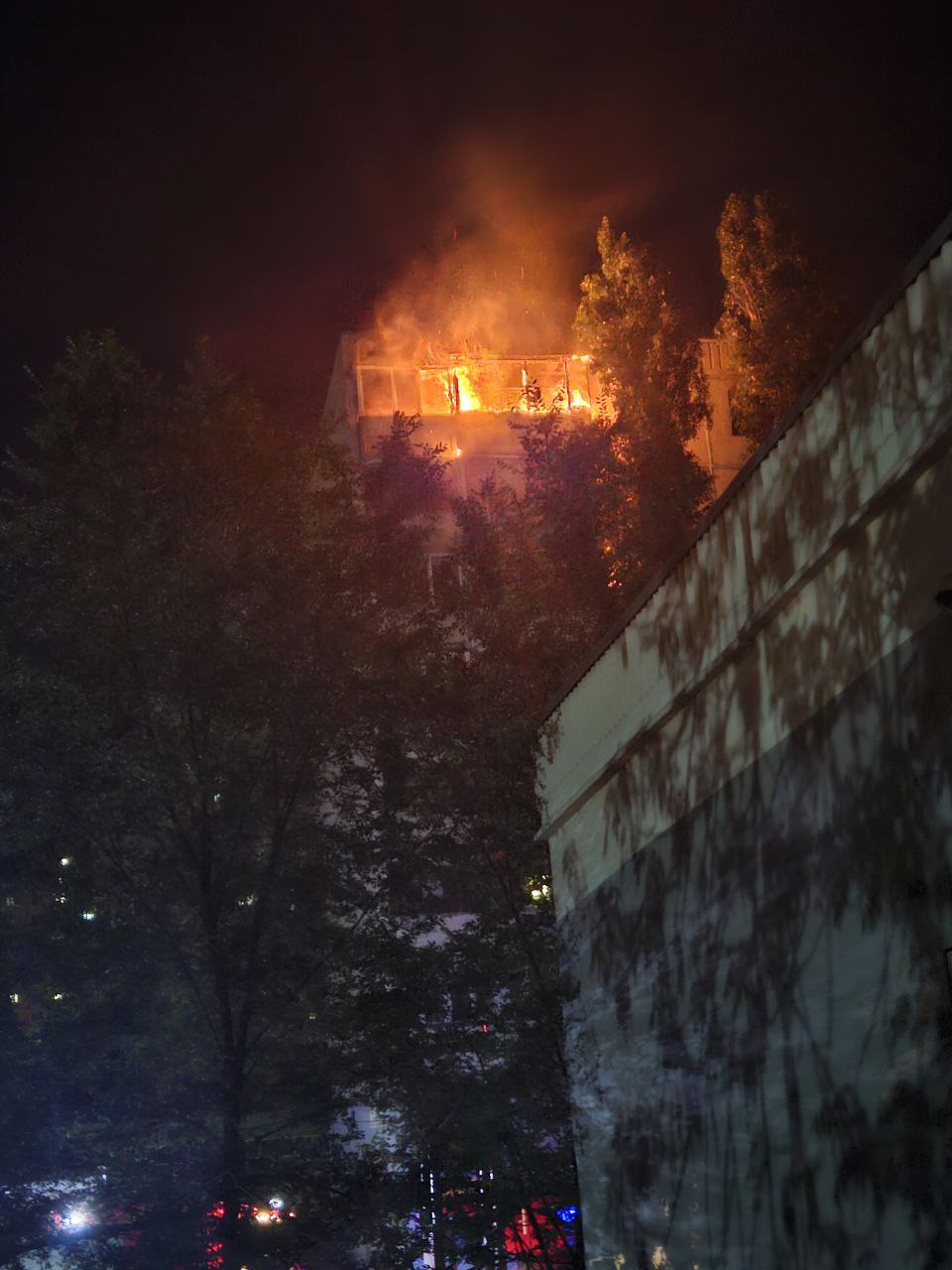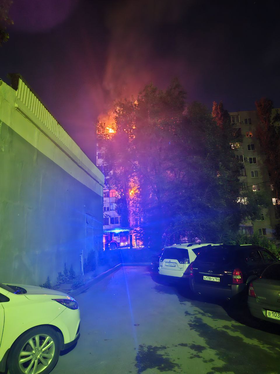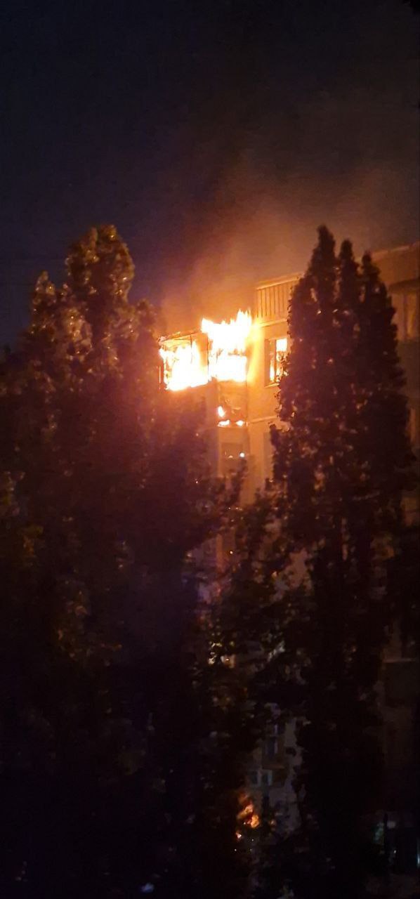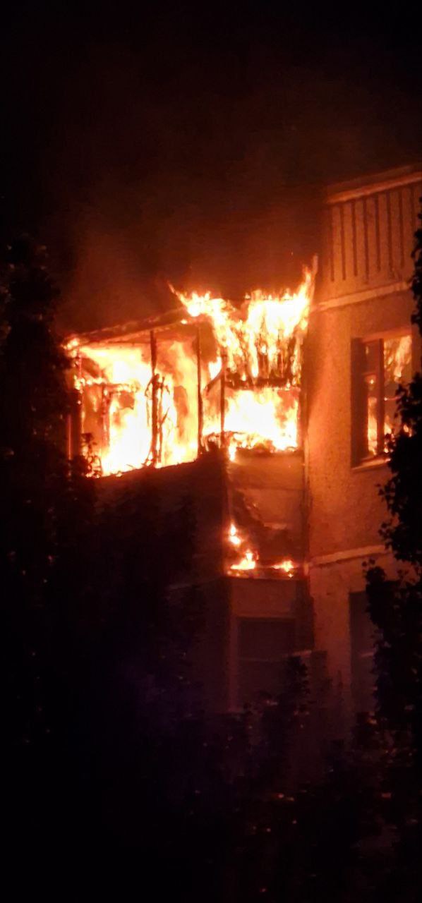 Вспыхнул балкон на 9 этаже. Оперативно на место прибыли 2 пожарных расчёта и скорая помощь