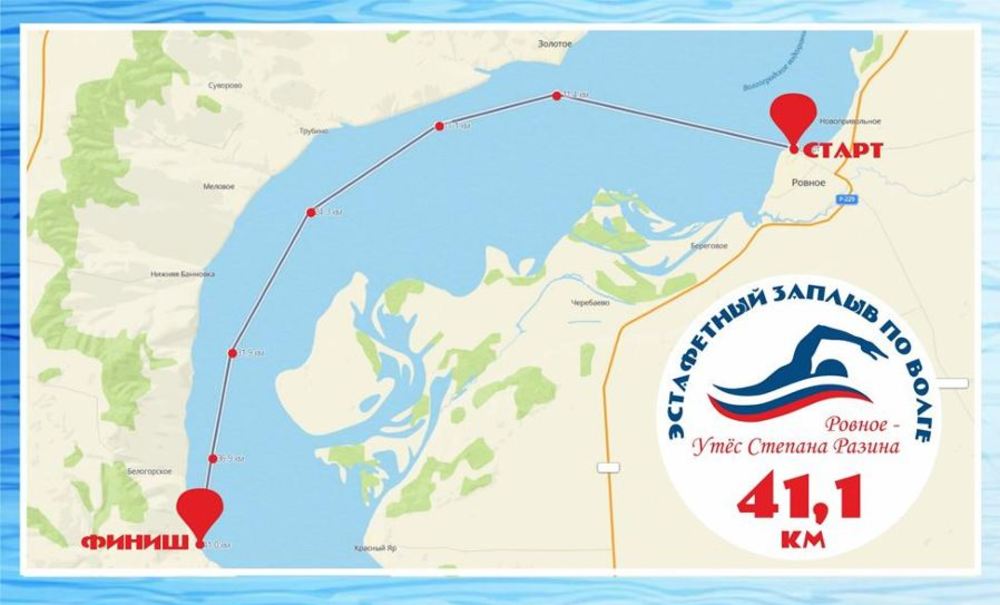 Заплыв будет представлять из себя эстафету вольным стилем. Маршрут пройдет в одном из самых широких разливов Волги с глубиной более 30 м и через красивейшие места прибрежных территорий: село Золотое, церковь Святой Троицы Живоначальной, Утёс Синее Лбище, монумент самолету-истребителю МиГ-17 и Утёс Степана Разина.