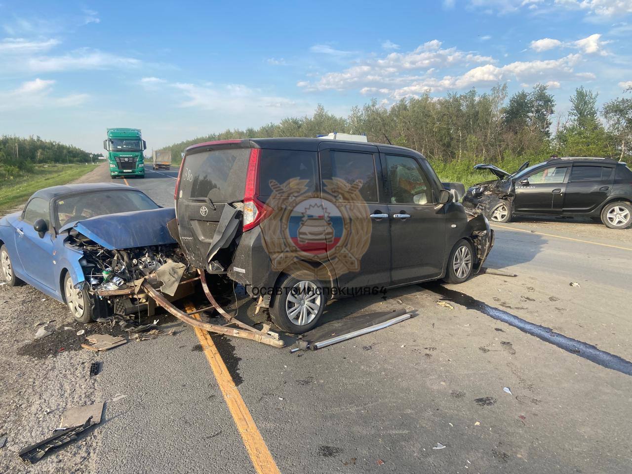 В Гагаринском районе Саратова на трассе столкнулись четыре автомобиля. Об этом сообщает городская Госавтоинспекция.
