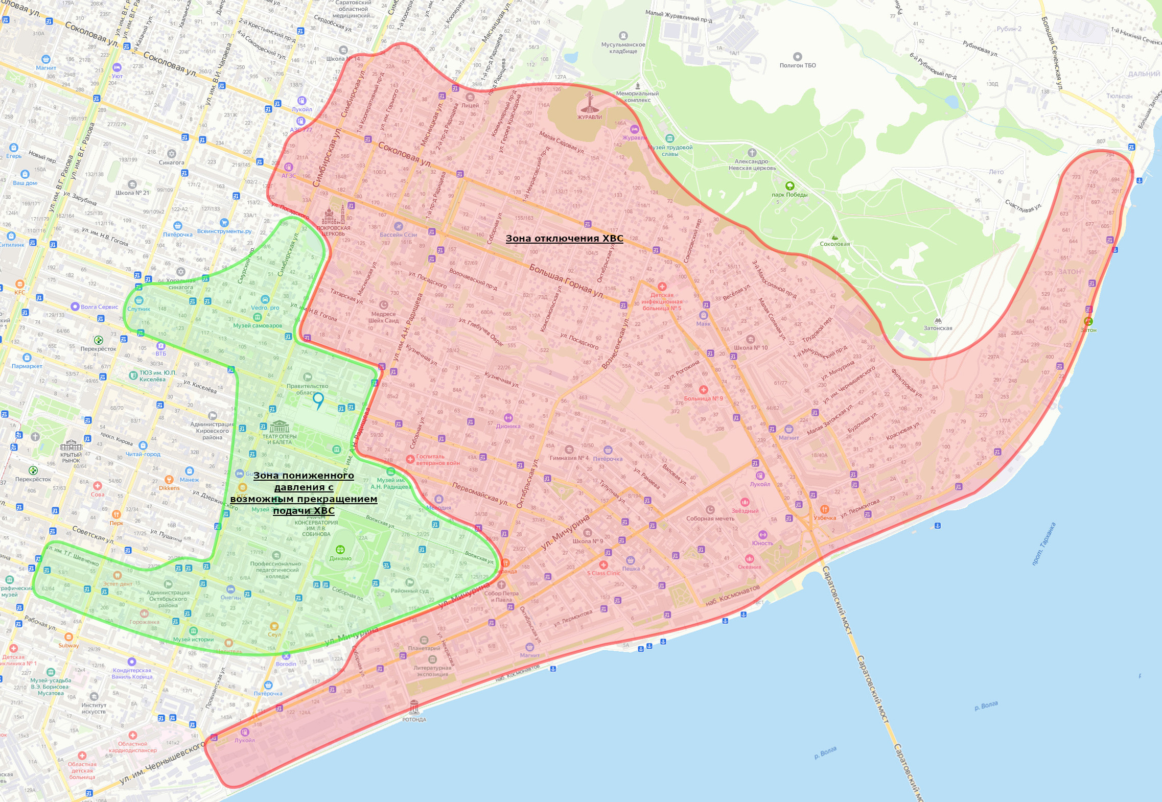 С часу ночи 15 июля до 8 утра 16 июля холодной воды не будет у абонентов в границах улиц: Смурский пер. (от Посадского до 1-й Садовой) - Малая Садовая - Фильтровая - Большая Затонская - Набережная Космонавтов - Чернышевского - Провиантская - Мичурина - Октябрьская - Волжская - Радищева - Кутякова - Горького - Глебучев Овраг - Посадского. Под отключение попадёт также пос. Затон.