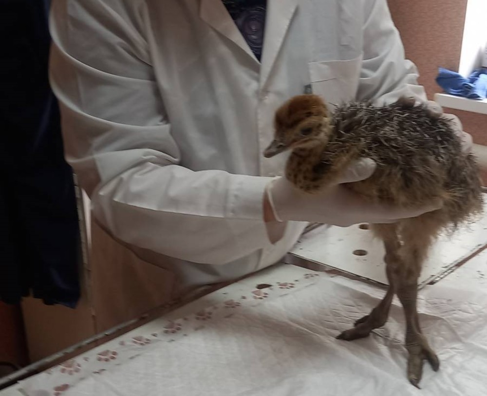 К специалистам станции обратился местный житель, который принёс на приём трёхмесячного страусёнка. По словам хозяина, птенец слабо опирался на ноги, больше сидел. Ветеринары определили у птицы авитаминоз и назначили витаминизацию.