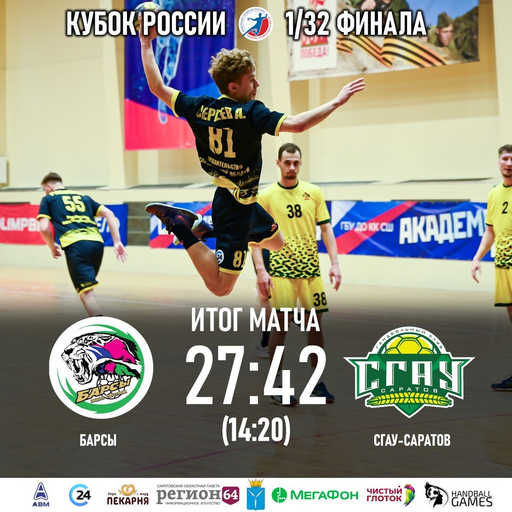 Сегодня в Краснодаре гандбольный клуб "СГАУ-Саратов" провел матч 1/32 финала Кубка России против "Барсов".