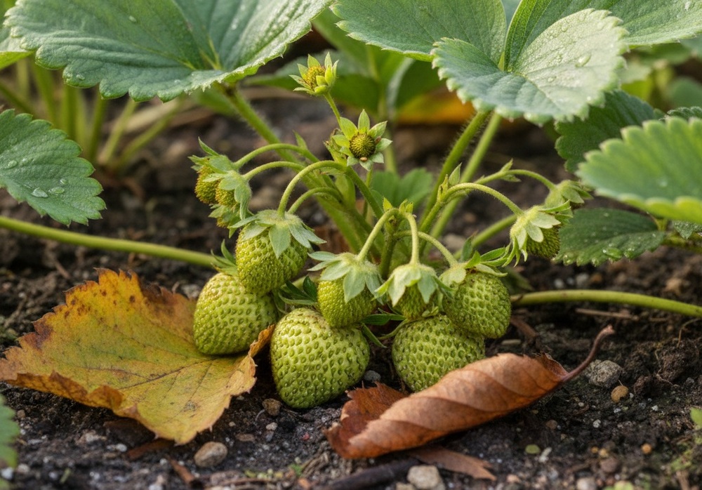 Приехавшие на дачу в минувшие выходные хозяева с удивлением обнаружили на огороде свежие кусты. На них висели зелёные ягоды. Дачники гадают, успеет ли клубника зарумяниться (судя по прогнозу погоды - нет).
