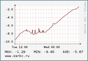 Сейчас в городе 1 градус мороза. Позже температура воздуха повысится до 1 градуса тепла, вечером и ночью термометр будет показывать +2 градуса.